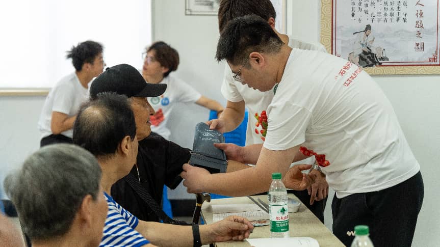 在血压测量区,志愿者们严格按照标准化流程,为居民逐一绑上血压计袖带、完成加压、测量、读数等操作,详细记录每位居民的收缩压、舒张压等数据,并认真询问他们的日常饮食、作息规律和既往病史。对于测量结果正常的居民,志愿者们送上健康祝福;针对血压数值异常的居民,志愿者们耐心分析可能的原因,提供个性化的健康指导,比如建议减少钠盐摄入、增加有氧运动、遵医嘱按时服药等,并反复叮嘱他们定期监测血压,如有不适及时就医。