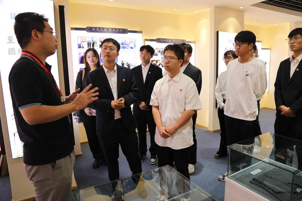 在新北区人民法院办公室主任刘奕的引导下,师生们有序进入公开审理法庭,现场观摩了一起妨碍公务罪案件的庭审过程。从书记员宣读法庭纪律、公诉人指控犯罪,到被告人陈述辩护、法官当庭质证,整个庭审流程严谨规范、秩序井然。同学们端坐旁听席,认真聆听庭审细节,深刻体会到法律的严肃性与司法程序的公正性,也对庭审程序、证据规则等知识要素有了具象的认知。师生们一同参观了新北法院院史陈列室、企法联系室、诉讼服务中心等场所。在院史陈列室,泛黄的法律文书、老式的审判制服与多媒体影像交织,刘奕生动讲述着法院从建院初期到如今的发展变迁,师生们不时驻足凝视,深刻感受法治建设的厚重历程。走进企法联系室,墙上悬挂的“企业法律风险防控流程图”和“纠纷调解成功案例”格外醒目,大家直观了解到法院如何为企业发展提供精准司法服务。在诉讼服务中心,师生们现场观摩了立案的整体流程,工作人员演示了如何通过线上线下平台提交材料、查询案件进度,从而实现与时俱进的“一站式诉讼服务”。不少同学还主动提问,围绕“如何保护消费者合法权益”“未成年人案件审理特点”等问题与工作人员深入交流,在互动中进一步提升法治认知与维权意识。