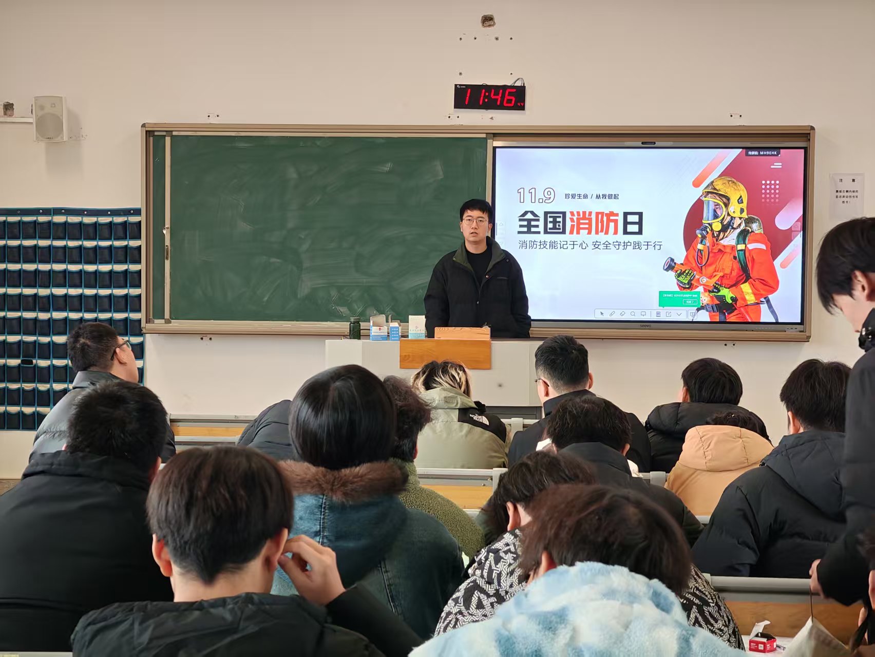 活动伊始,章利民主持召开消防安全专题宣讲会,结合高校校园火灾典型案例,尤其是针对设备工程学院实验室仪器密集、用电负荷较高,以及学生宿舍违规用电风险等专业与生活场景特点,进行了深入浅出地讲解。宣讲中,章利民不仅系统普及了火灾成因、初期火灾处置流程、应急逃生路线规划等基础常识,还重点解读了实验室危化品安全存储规范、电气设备日常检查要点等针对性内容。他通过对比合规与违规用电设备、展示火灾事故警示图片等直观方式,让学生深刻认识到消防安全的重要性,同时现场解答了学生关于日常消防安全隐患排查、灭火器正确使用等疑问,引导学生树立“安全第一,预防为主”的理念。