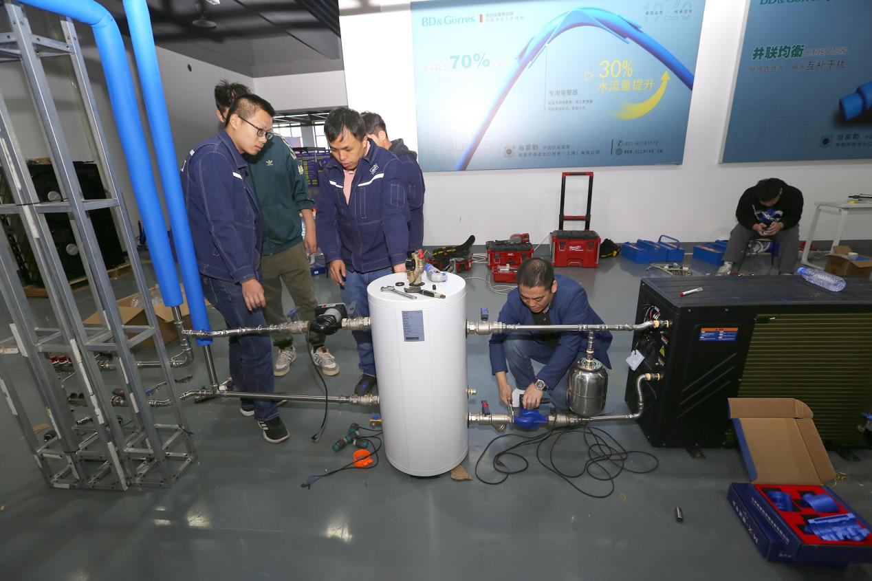 理论讲解结束后,教学活动转入专业实训中心,实操演练正式展开。张蒙聚焦暖通空调系统的安装调试、故障排查等核心实操技能,以“蓝色文化”倡导的精准规范为准则,逐一示范设备管路连接、参数设定、运行检测等关键步骤。他强调,实操环节更能体现“蓝色匠心”,每一个管件的安装、每一组数据的记录、每一次故障的判断,都需要以理性思维为支撑,以严谨态度把控细节,丝毫失误都可能影响整个系统的运行效率与安全。