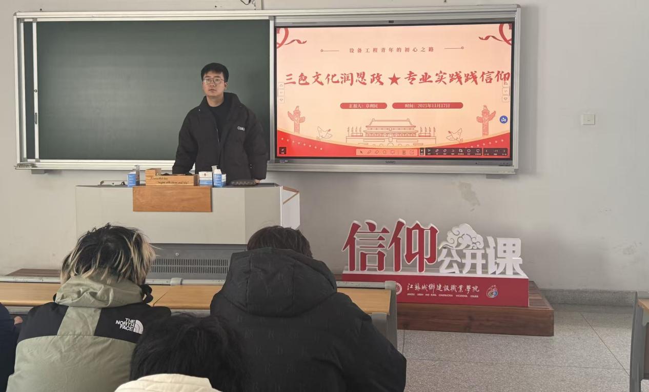 为推动思政教育与专业实践深度融合,以特色文化涵养青年信仰,近日,设备工程学院辅导员章利民以“三色文化润思政,专业实践践信仰”为题,开展主题信仰公开课。让同学们在文化浸润与实践指引中坚定理想信念。