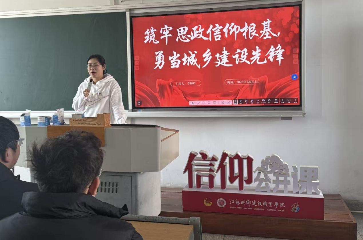 课堂上,李帅玲以习近平新时代中国特色社会主义思想为指引,结合城乡建设事业发展大势,从“信仰是职业前行的灯塔”“专业是担当作为的底气”“实践是青春建功的舞台”三个维度展开讲解。她结合上海“青新焕彩”行动中青年设计师参与社区微更新的案例,生动阐释了青年一代在城乡空间优化、民生福祉提升中的使命担当;通过学院学子在全国职业院校技能大赛中的获奖事迹,激励同学们锤炼建筑智能化、供热通风等专业本领,将个人成长融入城乡建设发展蓝图。