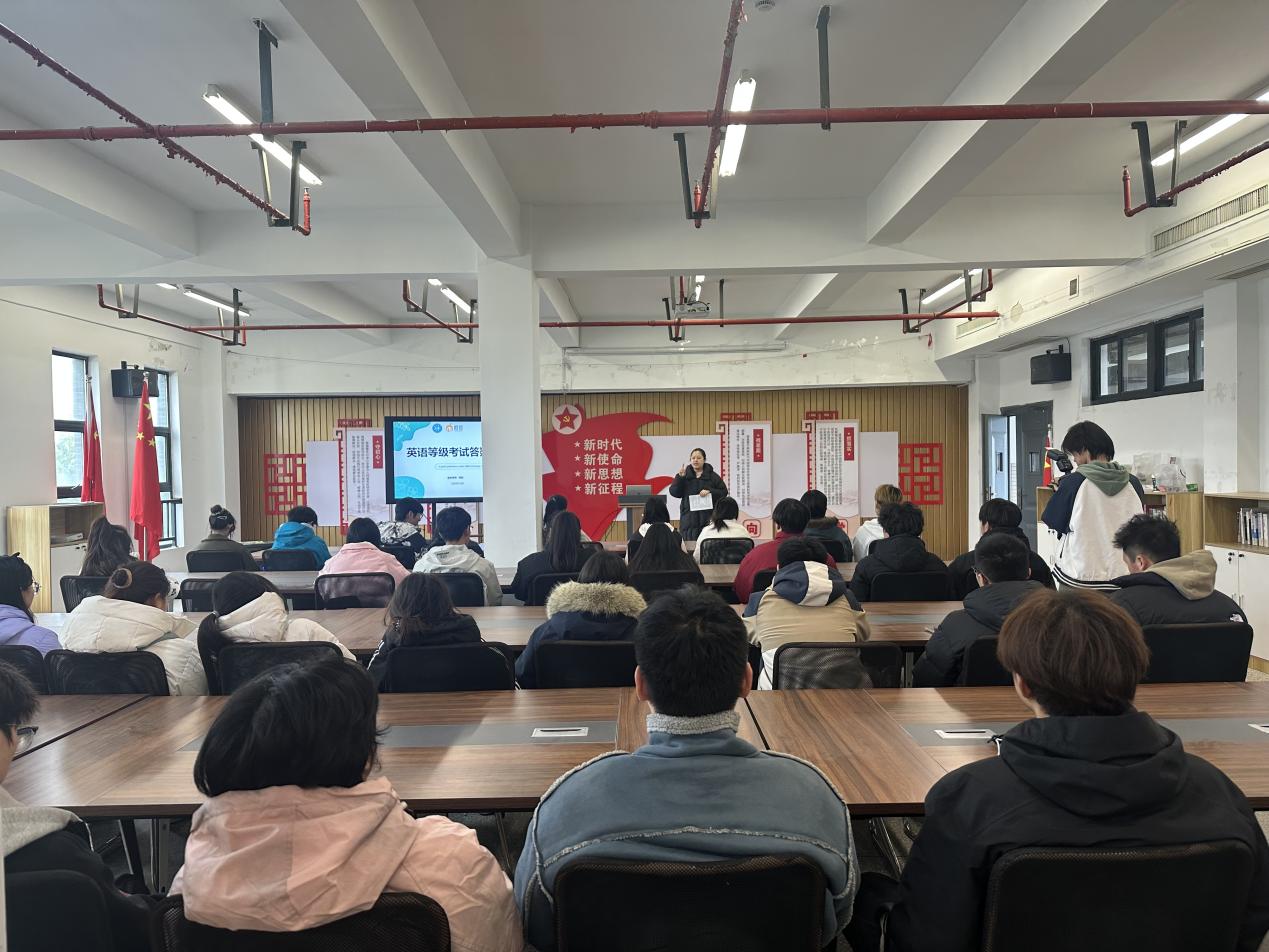 为帮助同学们精准把握英语四级、B级考试脉络,提升应试能力,12月4日,设备工程学院在群团活动室成功举办“英语四级B级考试分享会”。本次分享会由学生会指导教师黄怡俊主持,基础部英语教研组教师顾航主讲,王佳锞、杭泊涵两位高分通过考试的学生代表作为朋辈分享嘉宾,近百名备考学子到场参与。