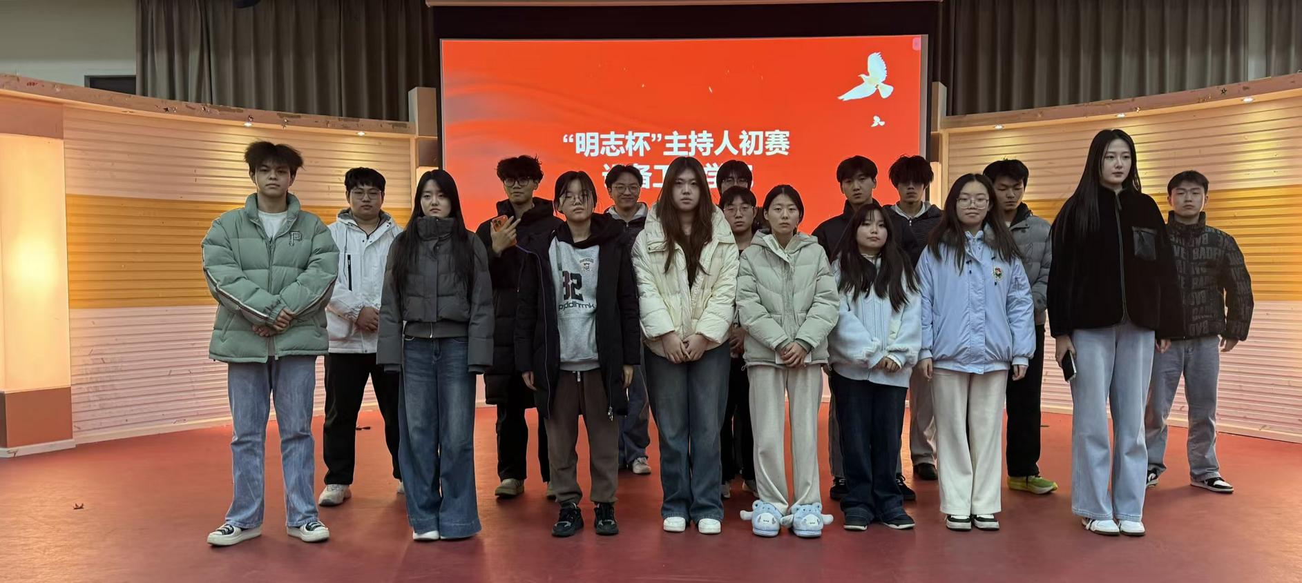 本次“明志杯”主持人比赛自启动以来,得到了全院学子的积极响应与热烈参与。经过前期班级推荐、初赛选拔,共有12名选手脱颖而出,晋级决赛。决赛现场氛围热烈,选手们精神饱满、斗志昂扬。比赛设置了自我介绍、模拟主持、即兴应变三个环节,全方位考验选手的语言功底、舞台表现力、逻辑思维能力与临场反应能力。