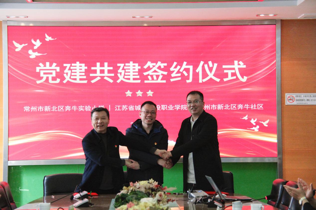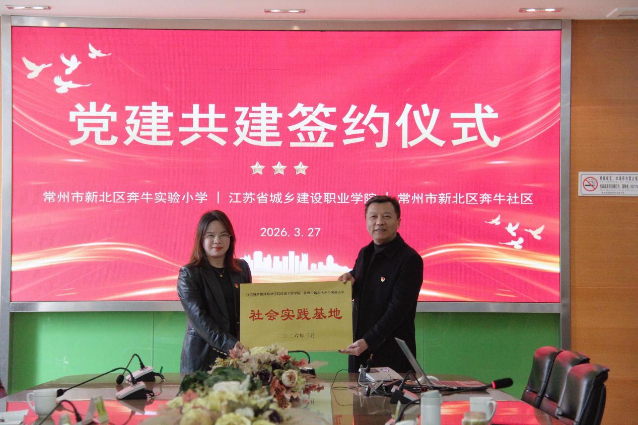 为深入推进党建与育人工作深度融合,创新校地、校企协同发展模式,3月27日,江苏城乡建设职业学院设备工程学院、奔牛实验小学、奔牛社区党建共建签约仪式在奔牛实验小学顺利举行。新北区教育局相关领导及三方代表出席活动,共同开启院校社协同育人新篇章。